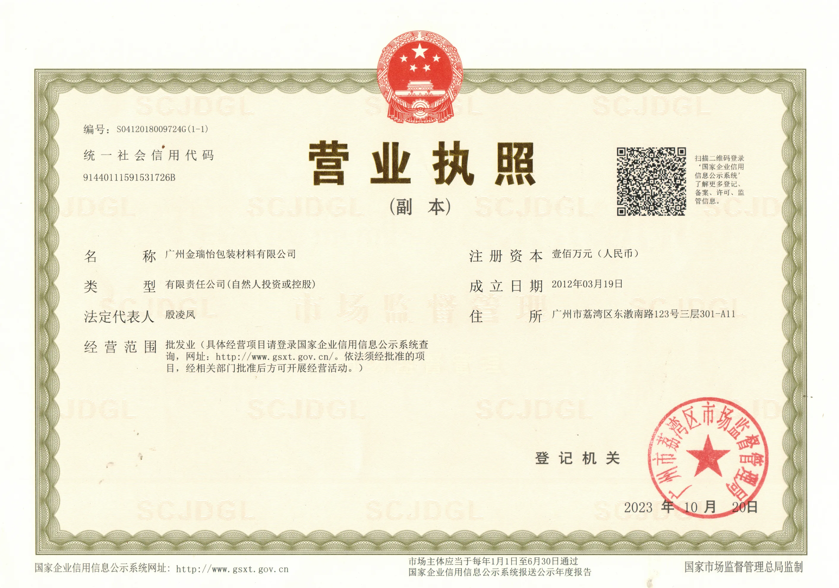 Registration No. : 91440111591531726B